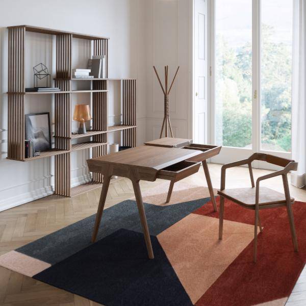 Le bureau Metis n'est pas simplement un espace de travail, mais une véritable pièce maîtresse qui attire le regard. Ses lignes épurées et ses finitions soignées font ressortir la beauté naturelle du noyer. Les trois tiroirs spacieux et les deux sections à couvercle offrent un rangement optimal, tandis qu'un compartiment secret permet de dissimuler vos objets les plus précieux.